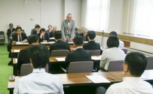 質疑応答を行い、民主党道議員団政策審議会に理解を深めて頂きました。また、合わせて今年度の最大課題である「奨学金」制度改善にかかわるこの間の とりくみと、自治体意見書の採択をはじめとした今後のとりくみについて中央労福協「奨学金」問題対策委員である菅田常勤理事より提起し、道下政策審議会会 長より「道議員団として全面的に協力をする」という力強い決意表明をしてもらいました。