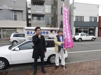 街頭宣伝は須田道議、民主党市議4名、北海学園大学川村教授と学生諸氏、民主党札幌のご協力をいただき実施しました。