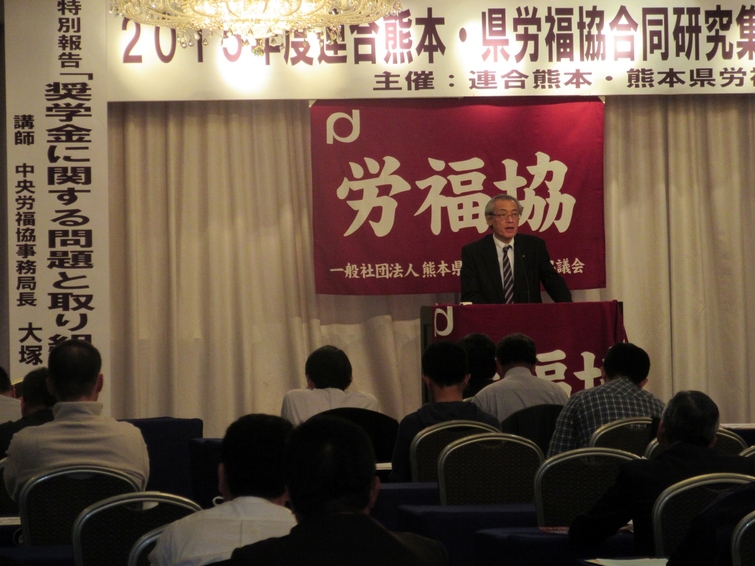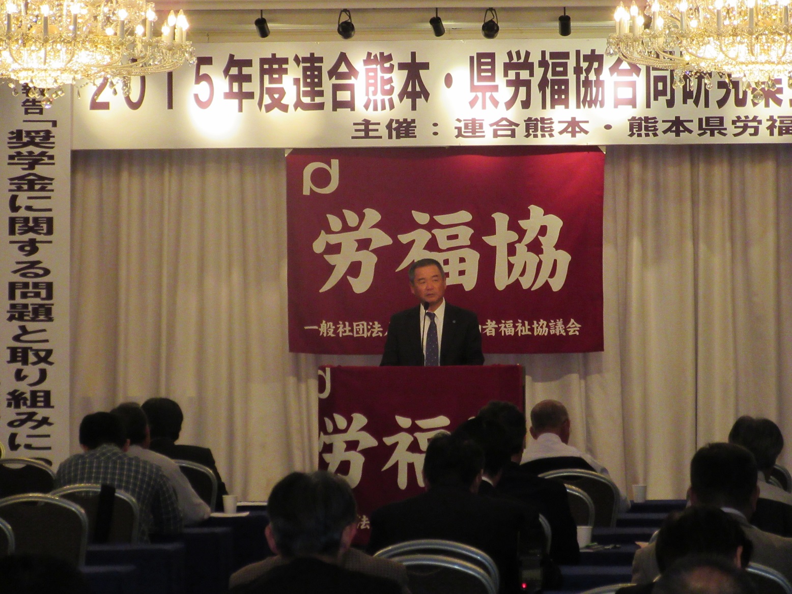 2015年11月25日、「“共助の拡大で、ゆとりある社会を築こう”」をテーマに111名の参加者で熊本県労福協と連合熊本の合同研究集会を開催した。