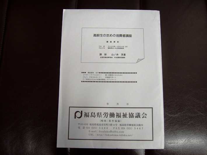 ◆ このことこそ労福協が「高校生のための消費者講座」を企画した本来の目的であった。「労福協サポート」相談事業5年の経験から生み出された若者の消費者教育の重要性、正しい知識を見につけ賢い消費者になってほしいと願っている。