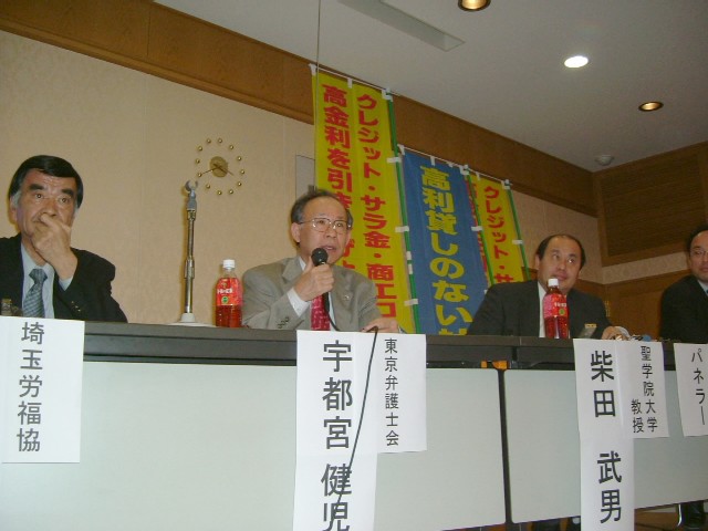 去る5月21日の日曜日、さいたま市の「さいたま商工会議所会館」で、これ以上、クレ・サラ被害者を出さないためにも、出資法で定められている上限金利29.2%を利息制限法の上限金利まで引き下げるための「高金利引き下げをめざすシンポジウム」が、クレ・サラ被害者で組織されている「夜明けの会」主催で開催され、被害者の事例報告や高金利引き下げ全国連絡会の宇都宮健児弁護士から、クレ・サラ業者やヤミ金融の実態などが報告されると同時に、被害者・弁護士・司法書士・労働組合・労福協などが一体となって、高金利引き下げの法律を実現するために行動していくこが全参加者で確認されました。なお、現在、埼玉労福協では「高金利引き下げをめざす1000万署名活動」に取り組んでいます。