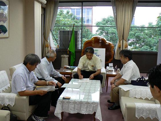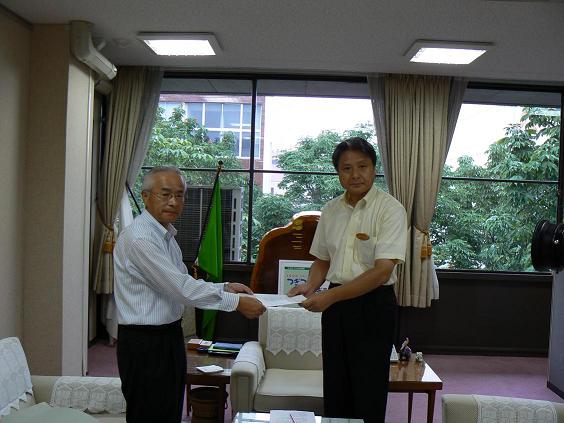 | 要求書を福田知事に手渡す 森田労福協会長 |