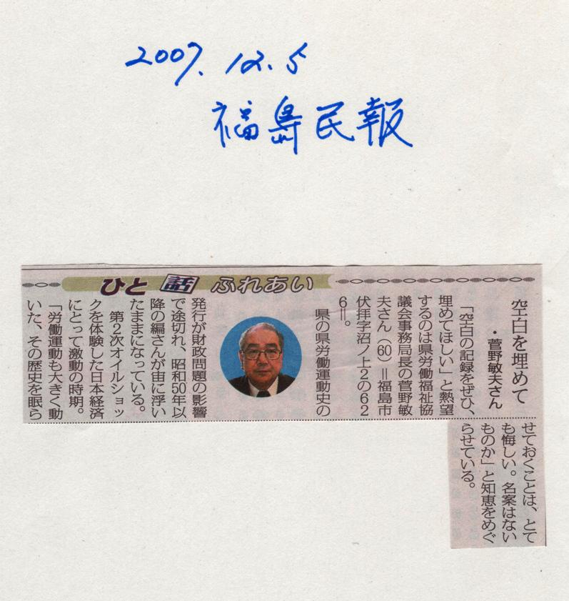 ◆ 2007年12月5日付け福島民報の記事をご覧ください。