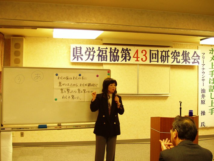 ◆ 今回のテーマは、フリーアナウンサー 油井原 操 さんの「ホメ上手は話し上手」と福島中央市民医療生協・春日良之 上松川診療所長の「医療現場から見た労働者の健康状態と今後の医療動向」について講演を受けました。
