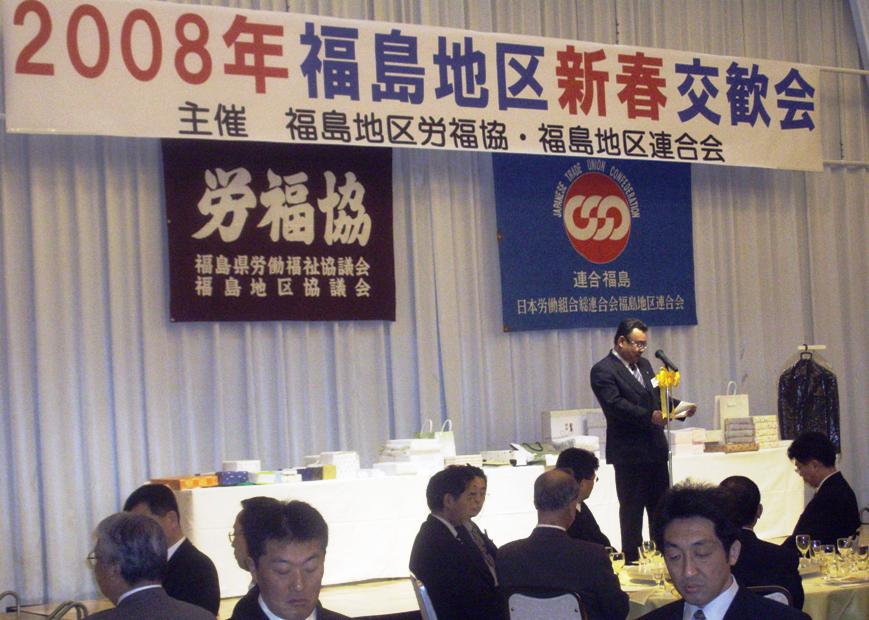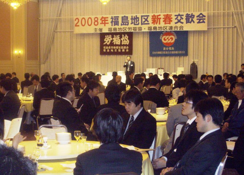 ◆ 福島地区労福協と福島地区連合共催の「2008年福島地区新春交歓会」は、1月23日(水)福島グリーンパレスにおいて開催し、約250名の出席をいただき、お互いに新年の挨拶を交わし、今年一年の活躍を誓いました。