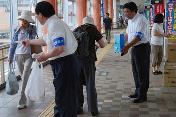 秋田地区は、10時から12時まで秋田駅前「ぽぽろーど」で連合秋田、中央地協、労福協から16人がカンパの協力を呼びかけた。