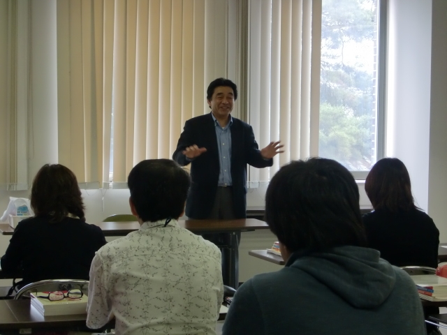 続いてジョブ上小の堀相談アドバイザーが、労福協の活動や館内の利用について説明を行い、また自分や家族が直面した失業、就職難などを紹介し、上小地区の雇用情勢は大変厳しいこと、介護の現場は物とつき合うのではなく、人と付き合っていくことが難しいところ。だが、どんなことでも人間関係が一番重要なことであると、開講にあたっての挨拶を行いました。