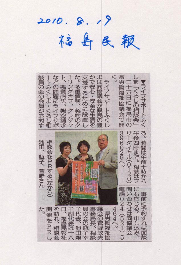 ◆ 「ライフサポートふくしま」くらし相談会の8月集中相談日をPRするために新聞社を訪れた際の記事を紹介します。