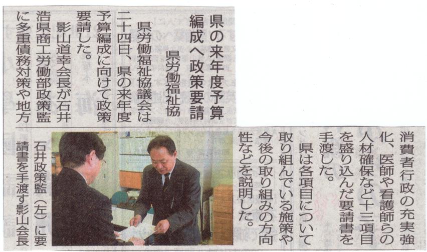 ◆ 11/24 県予算政策等に関する共同要請行動を行いましたが、そのときの取材記事が11/25付け民報、民友新聞に掲載されましたので紹介します。
