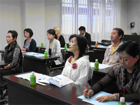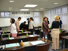 2010年9月25日(土)10時より、松江市;労働会館201号室において「労働者のための福祉厚生事業」の一環として、「新・ビジネスマナー講座・基礎編」を開催しました。講師に、池上由美さんを招き、ビジネスマナーの重要性や身だしなみの基本心得①清潔であること。②控えめで上品であること。③相手に違和感をもたれないこと。④機能的であること。⑤T.P.Oを考えることなど、おしゃれと身だしなみの違いや、ビジネスマナー基本5原則①身だしなみ。②あいさつ。③表情。④言葉遣い。⑤姿勢・動作。また、名刺交換や自己紹介のマナーなど、参加者の皆様方にも実践していただく形式で、分かりやすいご講演(1時間30分)をいただきました。<参加者16名>