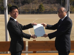 『労福協フェスタ・チャリティバザー』の収益金で、森町営グランドへ、木製ベンチ2台を寄贈致しました。