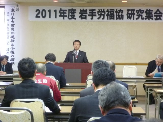 1月27日(金)15時30分より、岩手労働福祉会館4F「うすゆき」で、労福協主催の「2011年度研究集会」(隔年開催)が開催され、労福協構成団体の役職員40名が出席しました。