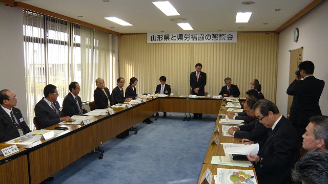 山形県と県労福協の懇談会を開催し、山形県からは橋副知事、深澤商工労働観光部長はじめ、
