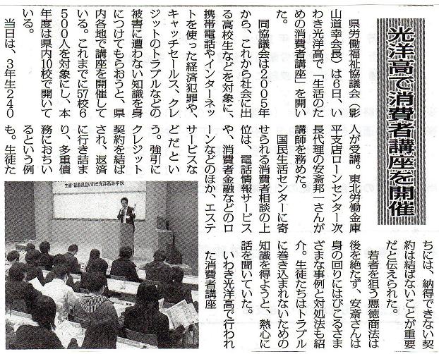 福島県立いわき光洋高等学校「高校生のための消費者講座」を開催 |