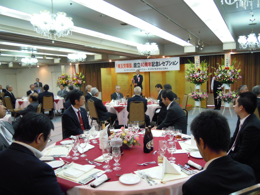 10月26日(金)、さいたま市浦和区のときわ会館において、埼玉県産業労働部や中央労福協の代表者をお招きし、歴代役員の方々や東部ブロック労福協の皆さま、地域労福協代表者に参加いただき「設立40周年記念レセプション」を開催しました。久々にお会いする諸先輩方からは苦労話や現役への叱咤激励など貴重なお話を頂戴しました。福祉事業団体との連携を強化し、ともに助け合い、支えあう「共生の地域社会づくり」に、より一層力を入れていくとの思いを強くしたレセプションとなりました。