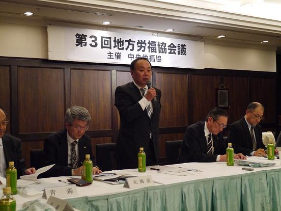 ◆はじめに東日本大震災の犠牲者の冥福を祈り全員で黙祷。遠藤幸男副会長の開会あいさつ、主催者を代表して山本幸司副会長、引き続き影山道幸会長が地元代表あいさつ。そして、この間、交代された地方労福協新事務局長、専務理事の自己紹介とつづきました。