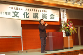 県労福協は、12月11日(日)13時30分から大分市中央町全労済ソレイユ7F「カトレア」において、2011年度『文化講演会』を開催しました。