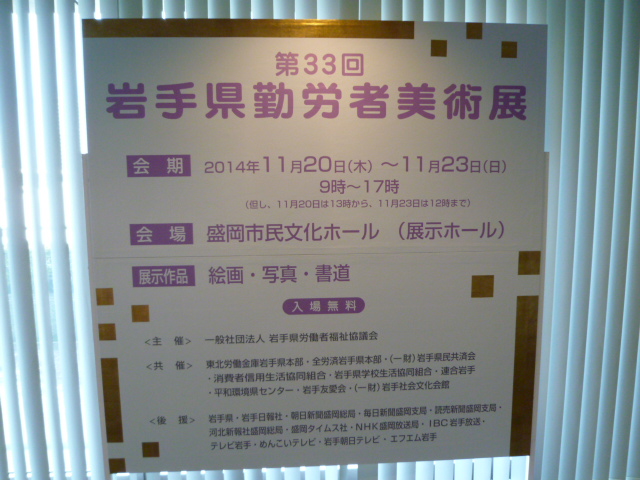 第33回岩手県勤労者美術展を盛岡市民文化ホール・展示ホール(盛岡市駅西通マリオス内)において11月20日(木)13時~23日(日)12時までの4日間にわたり開催いたしました。