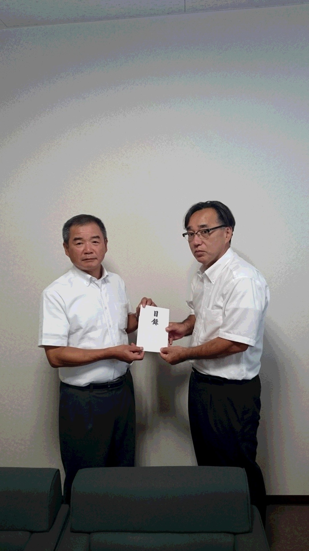 その後、見舞金目録を上田理事長に手交しました。