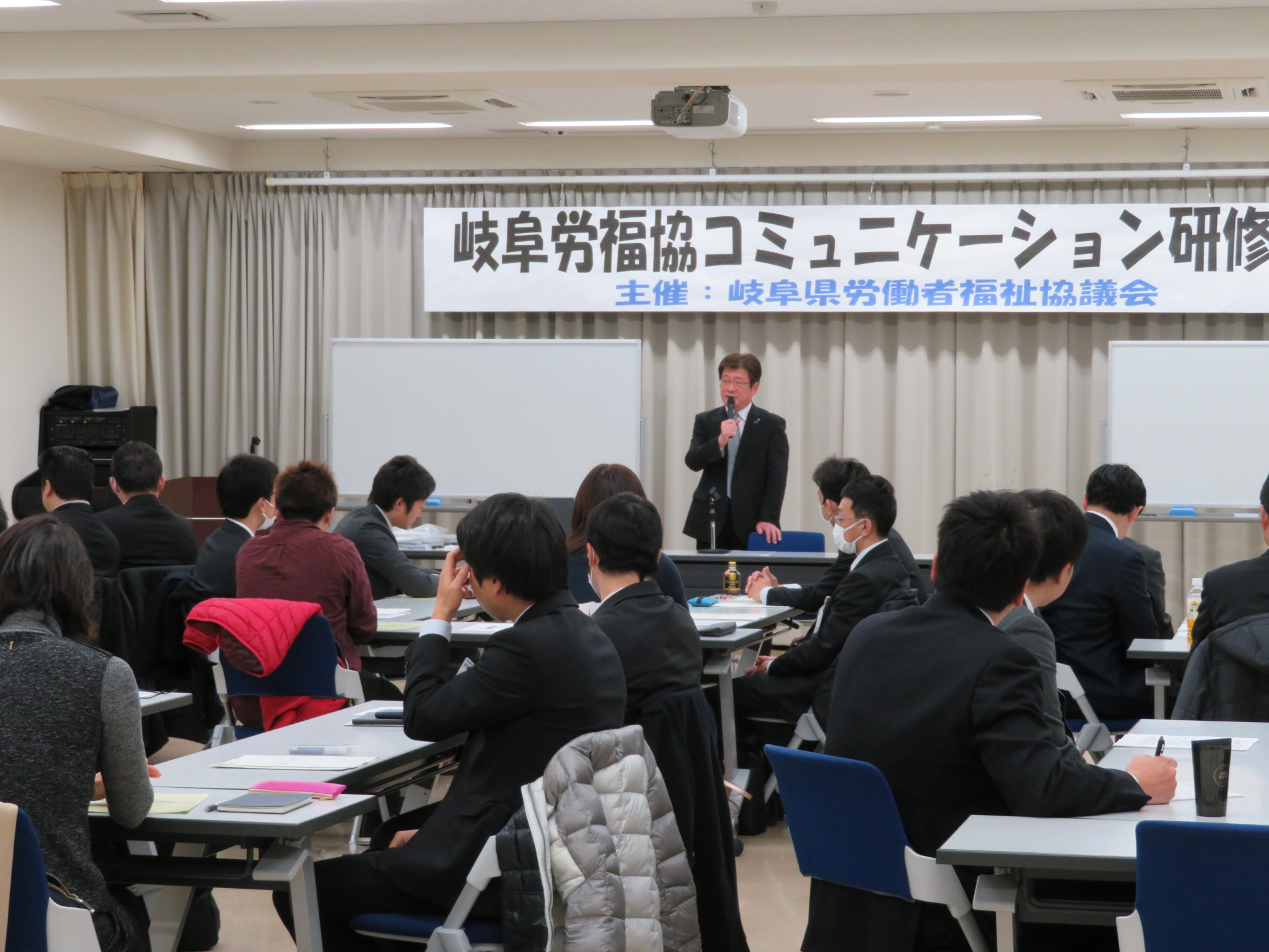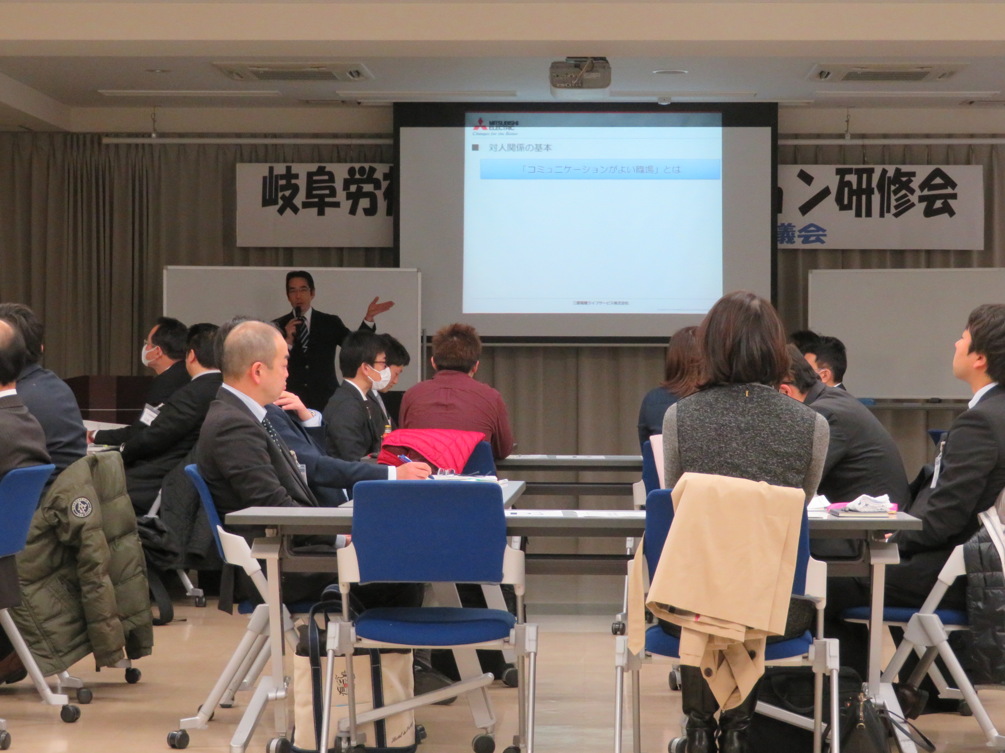 2月5日にワークプラザ岐阜大ホールにおいて、外部から三菱ライフサービス㈱の講師を招き、岐阜労福協主催、コミュニケーション研修会を開催しました。