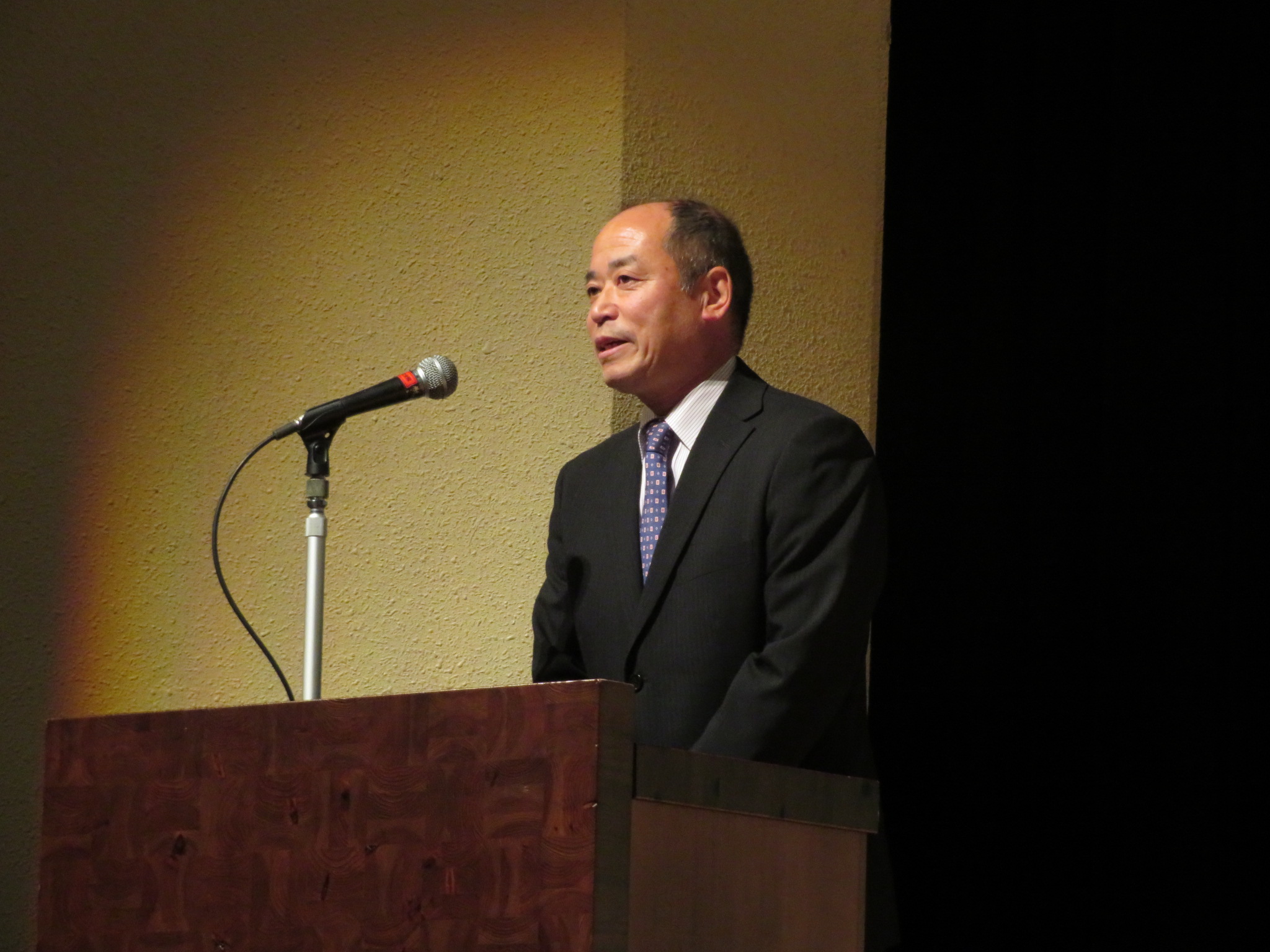 「可能性への挑戦」と題し、山形県の高校教師の内定が決まっていたにもかかわらず。周囲の反対を押し切り、夢であった大相撲入りを決意し、新弟子検査では身長が足りず、頭にシリコンを入れ合格を果たした。小兵でありながら小結まで上り詰めた苦労話と角界の裏話等会場の笑いを誘う楽しい講演でした。
