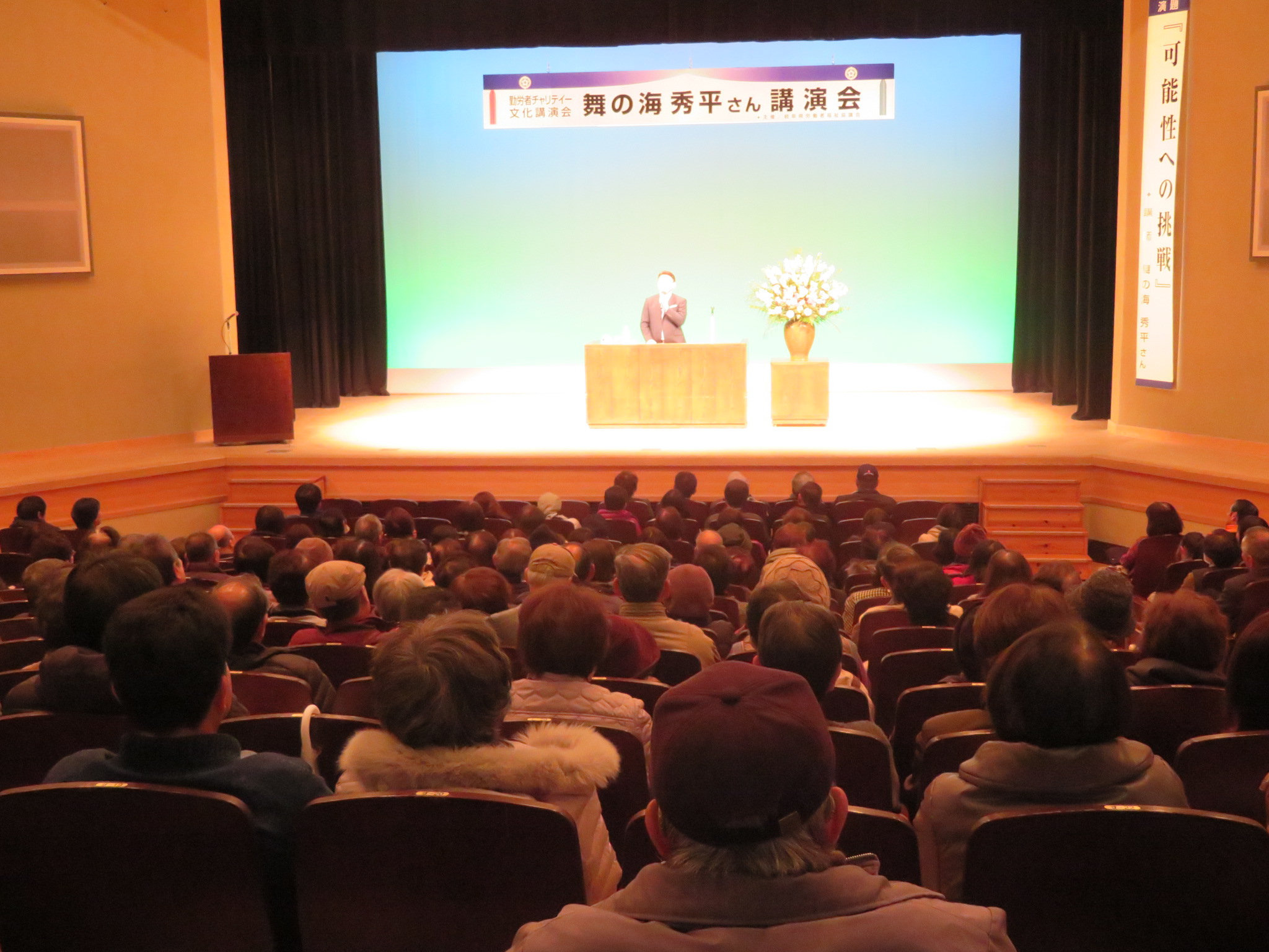 12月11日高山市民文化会館小ホールにおいて、舞の海秀平氏を招き、チャリティー文化講演会を開催し308名の入場者がありました。