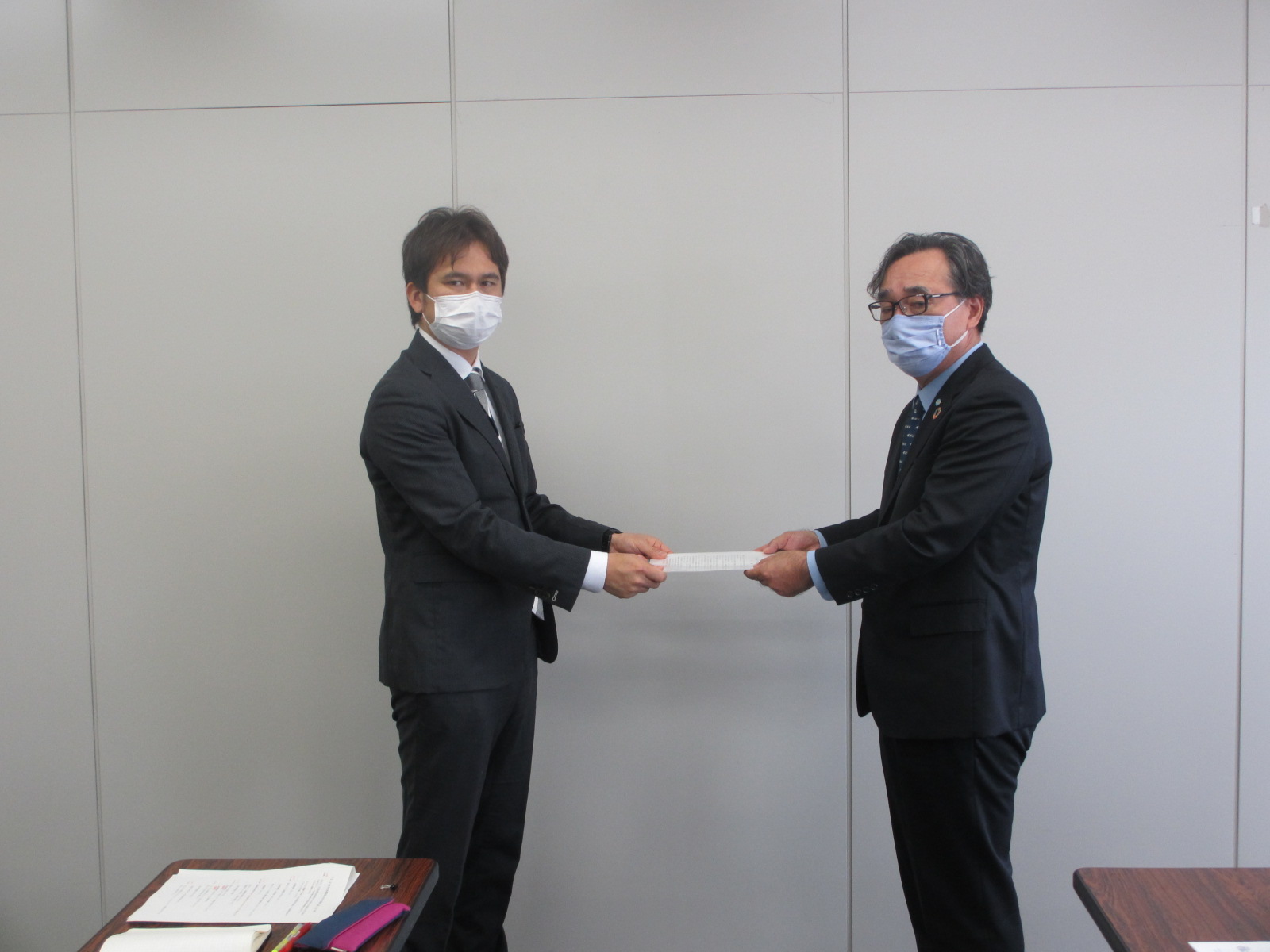コメント:要請書手交(大分県労福協 佐藤理事長から大分県商工観光労働部 高濱部長) |