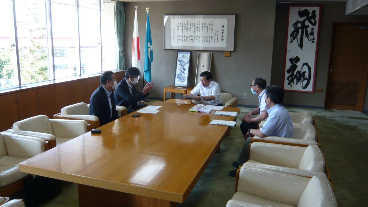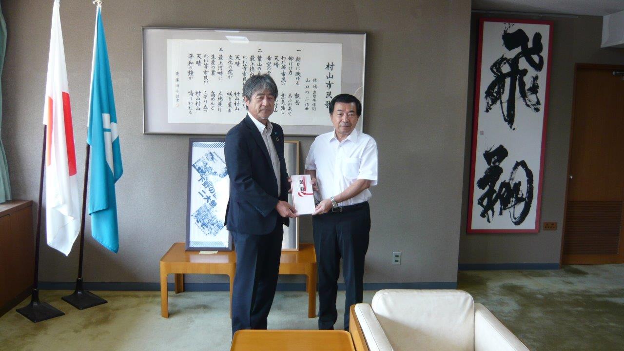 26日に、村山市役所にて、村山市社会福祉協議会 志布会長(村山市長)に目録を贈呈。
