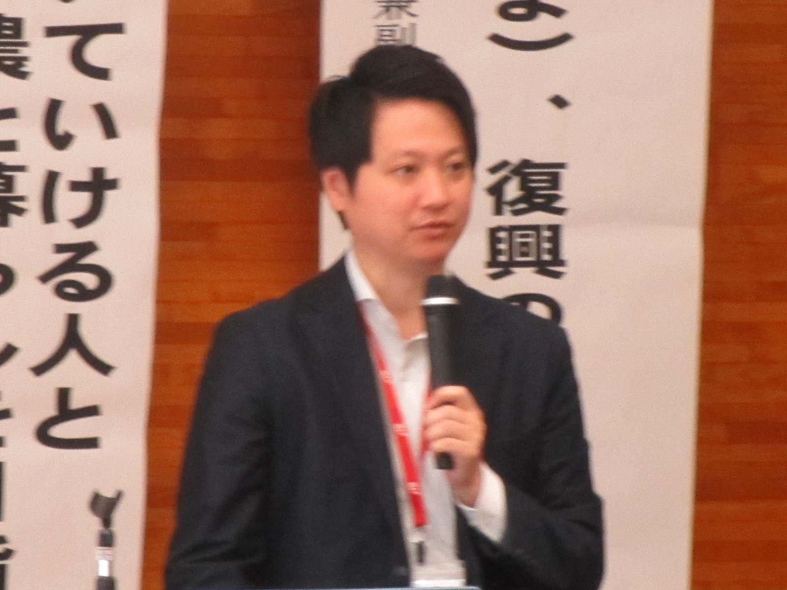 講演では、講師に「ふくしまの今を語る人」講師団から関 元弘氏(農業関係者) を迎え、「いつまでも続いていける人と環境に優しい農と暮らしを目指して」ご講演いただきました。内容については、①耕作放棄地の開墾②有機農業の取り組み③放射性物質に対する対策④将来に向けた新しい取り組み(物流の構築、農家の6次化、東和ワインプロジェクト、収穫体験ツアー、ロックフェス・・・) まさに、厳しい現実に直面しながらも地域を守り続ける活動報告でした。