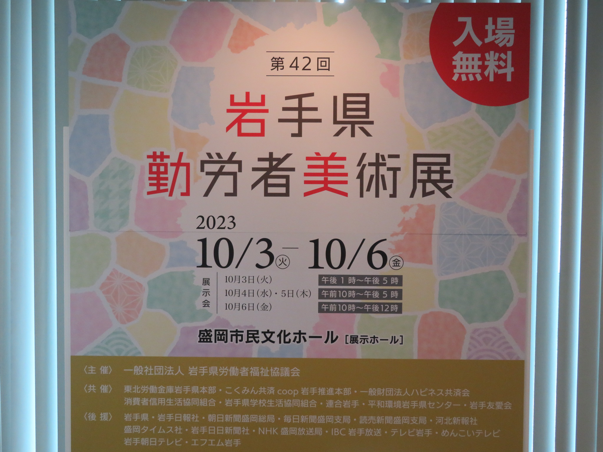 第42回岩手県勤労者美術展は、盛岡市民文化ホール「展示ホール」を会場に10月3日(火)午後1時から6日(金)正午までの4日間開催しました。来場者数は約220名。