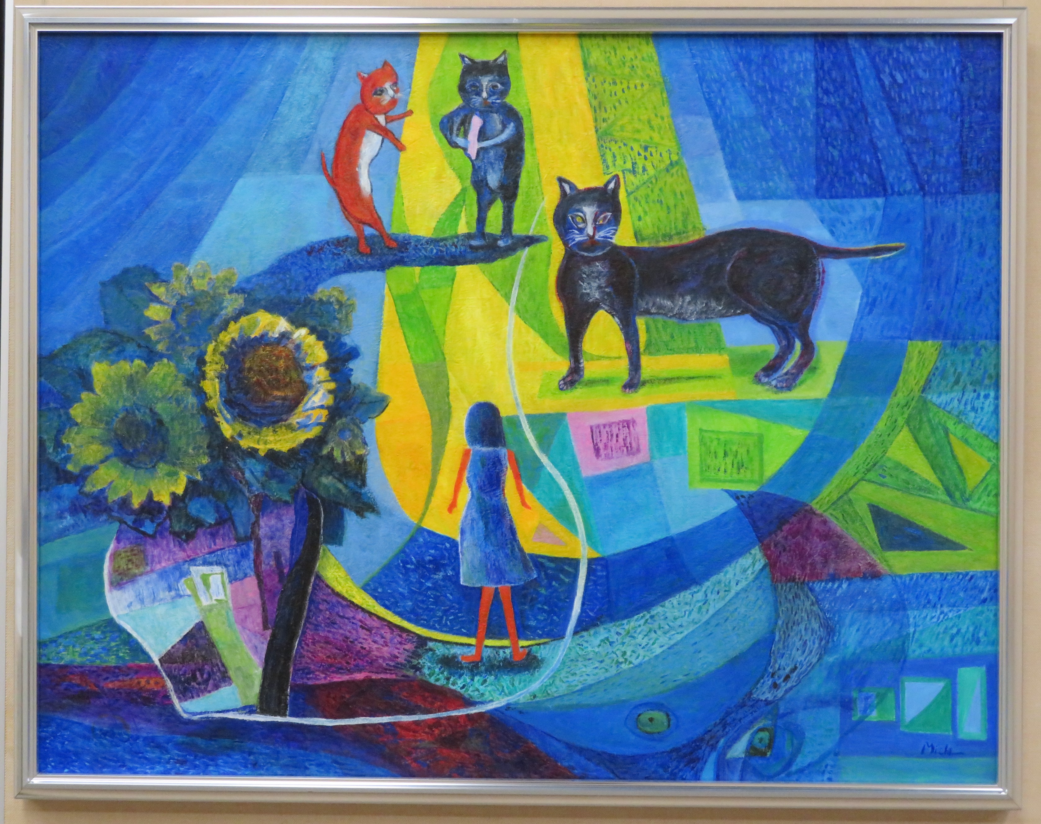 絵画の部 大須賀 美智子(花巻市) 「花と少女と猫たちと」