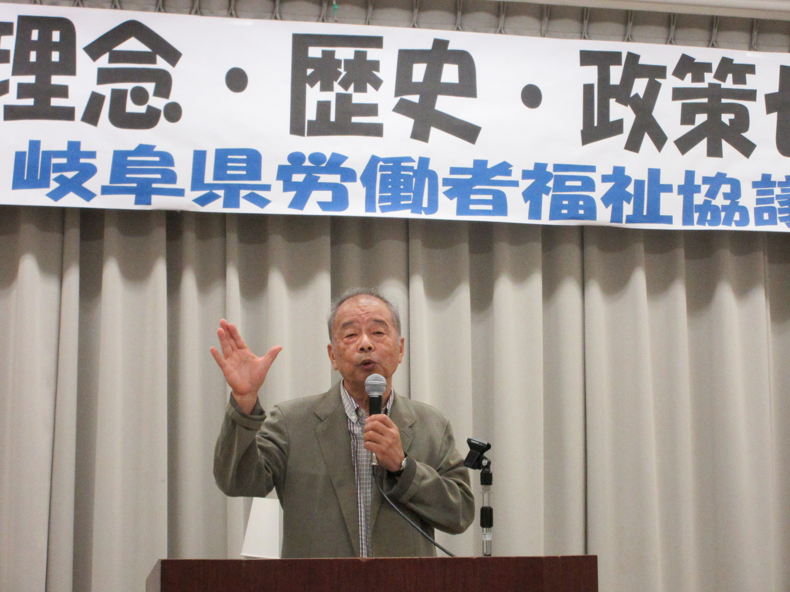 二つ目には、労働金庫は1966年に沖縄県を最後に(岐阜県は1955年)全都道府県に誕生、こくみん共済coopは1971年に沖縄県を最後に(岐阜県は1958年)全都道府県に誕生したこと、そして今日的な課題として、労金を利用している組合員は個人・団体とも2〜3割程度しか利用していない現実についてお話があり、労福協結成60年の節目に掲げた中央労福協2020年ビジョンが目指した、もう一度原点に立ち戻り、「ともに運動する主体」の再認識と強化していくことが必要であるとお話がありました。