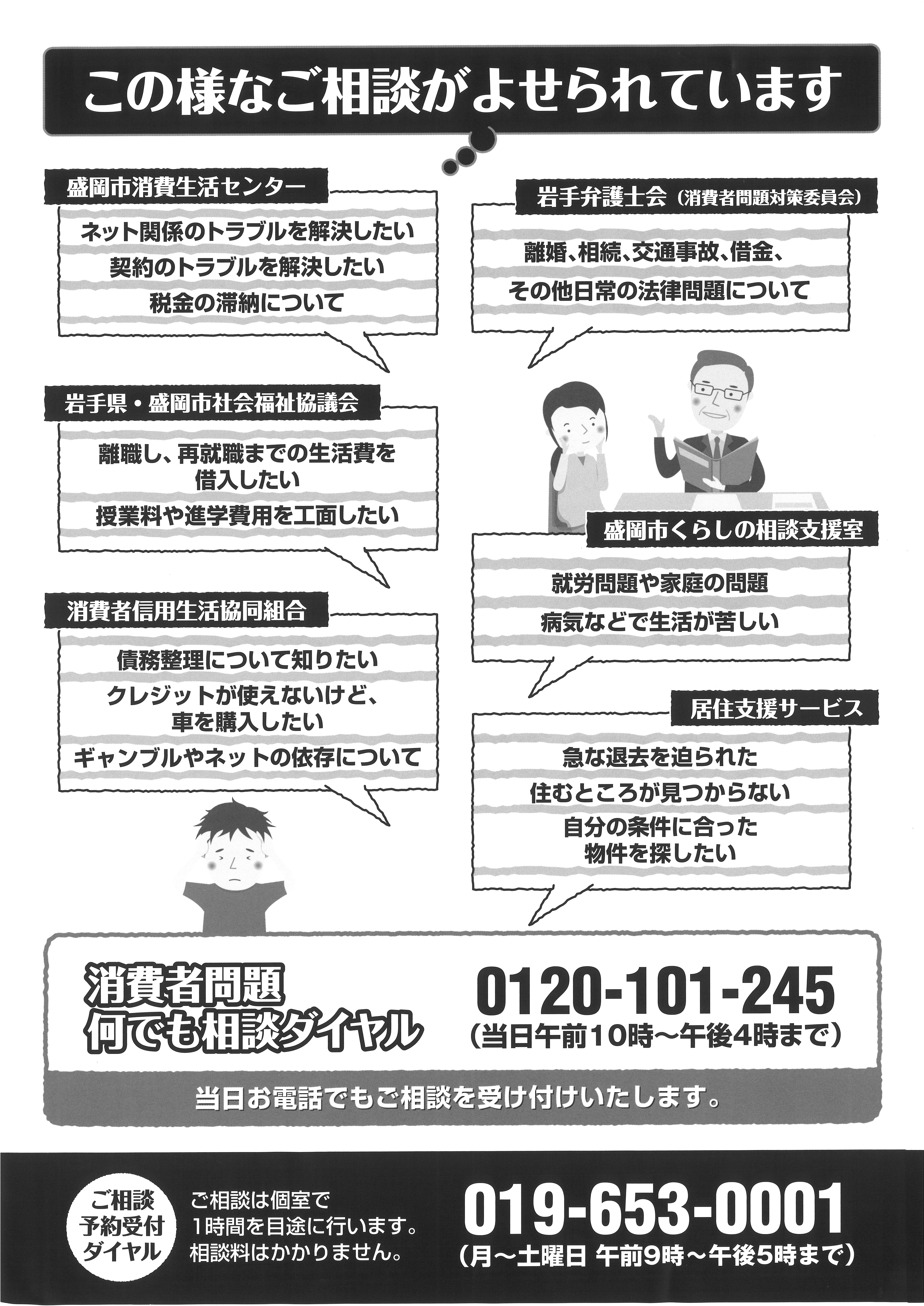 ・岩手弁護士会 消費者問題対策委員会 ・盛岡市くらしの相談支援室 ・消費者信用生活協同組合
