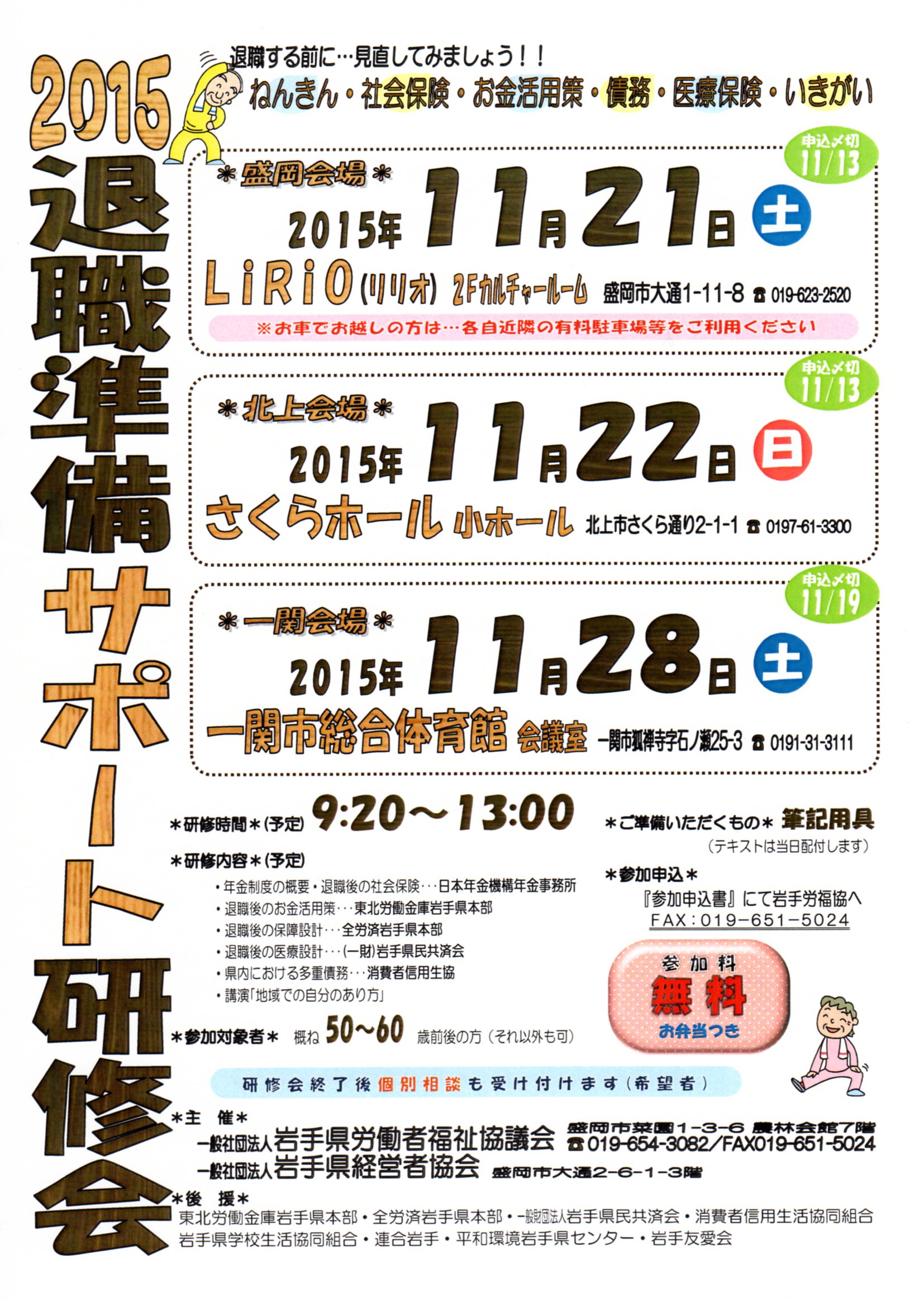 【岩手労福協】2015退職準備サポート研修会in盛岡 |