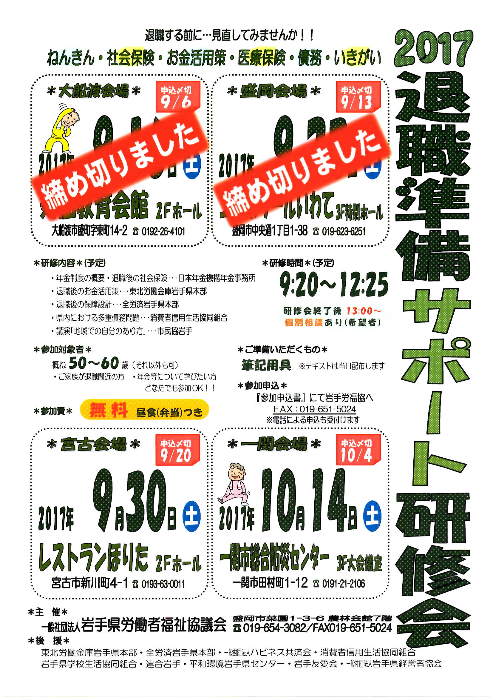 コメント:2017退職準備サポート研修会案内・参加申込書 |