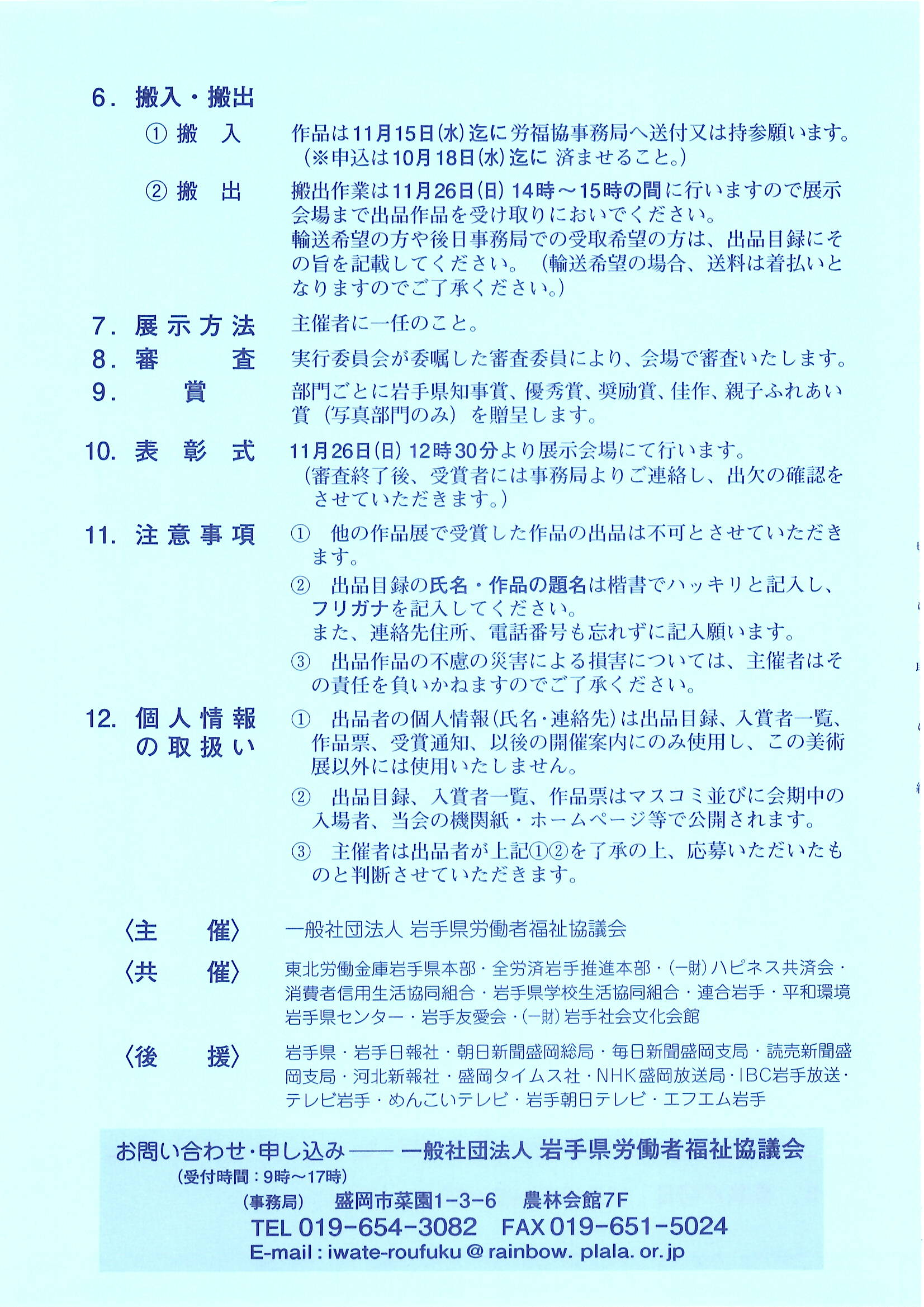 ①搬入 作品は11月15日(水)までに労福協事務局へ送付か持参ください。