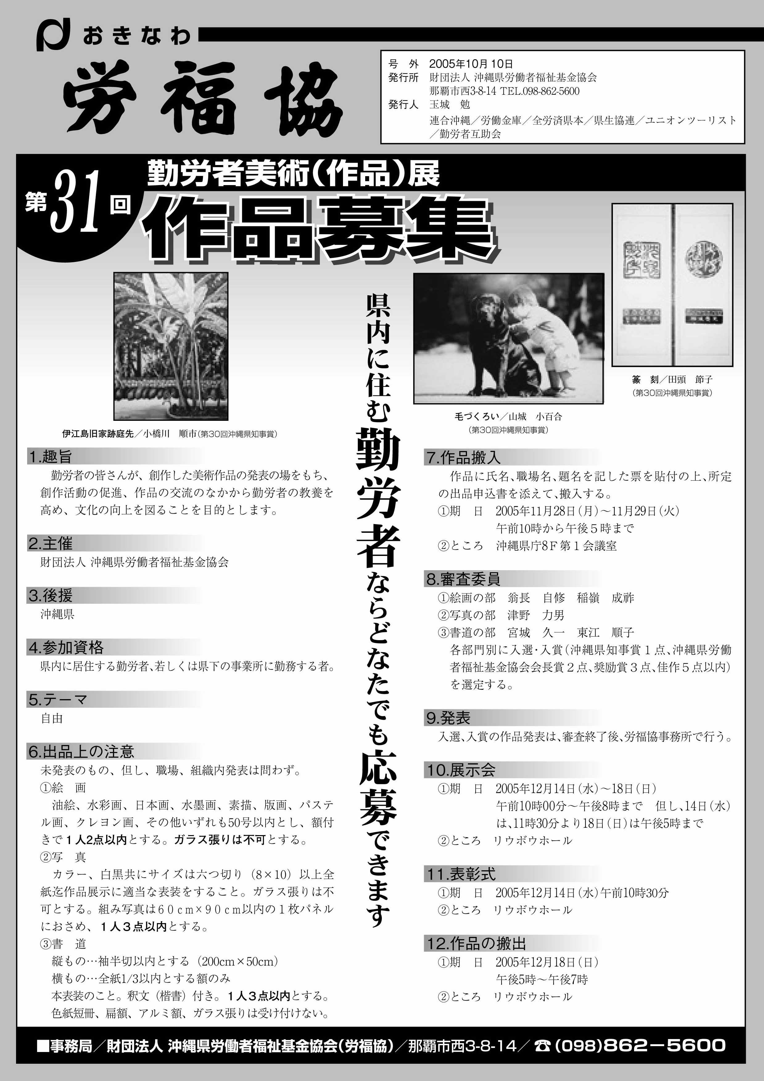 絵画の部、写真の部、書道の部の入賞作品を全て展示します。入場料は、無料です。皆さんどうぞ勤労者美術作品展に足をお運びください。