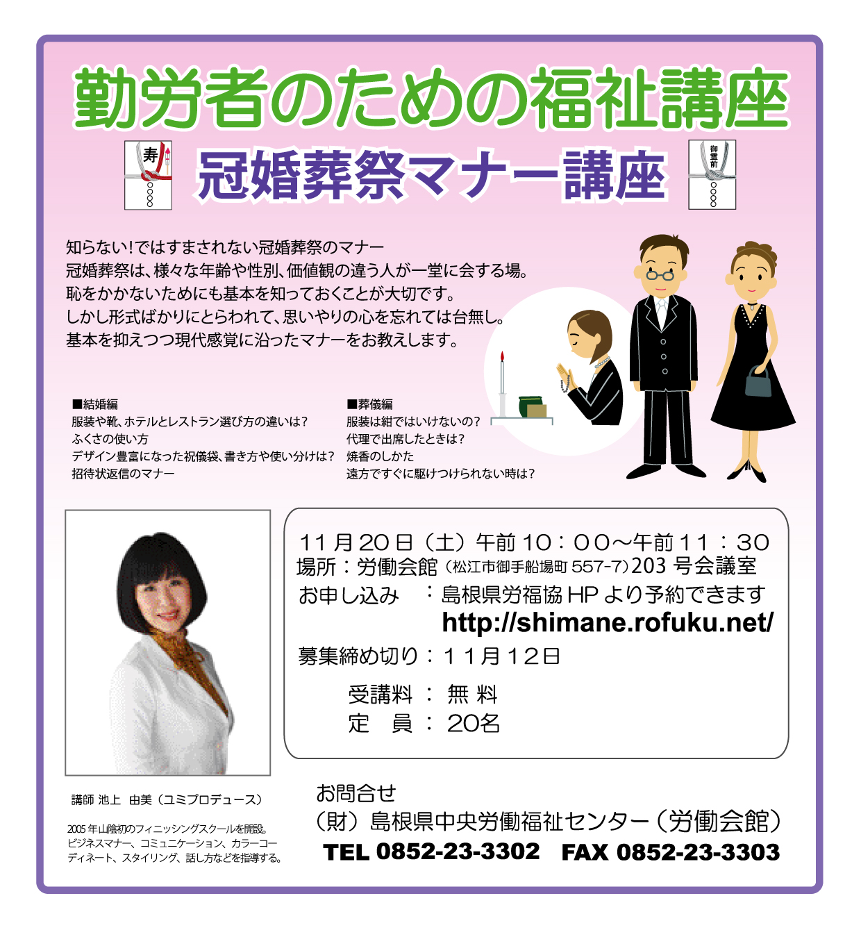 勤労者のための福祉講座 冠婚葬祭マナー講座
