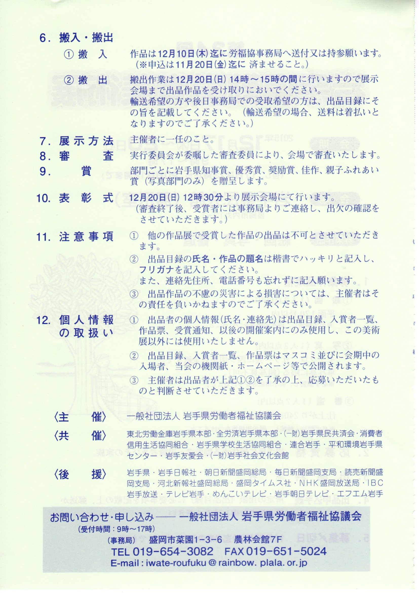 ①搬入 作品は12月10日(木)までに労福協事務局へ送付か持参ください。