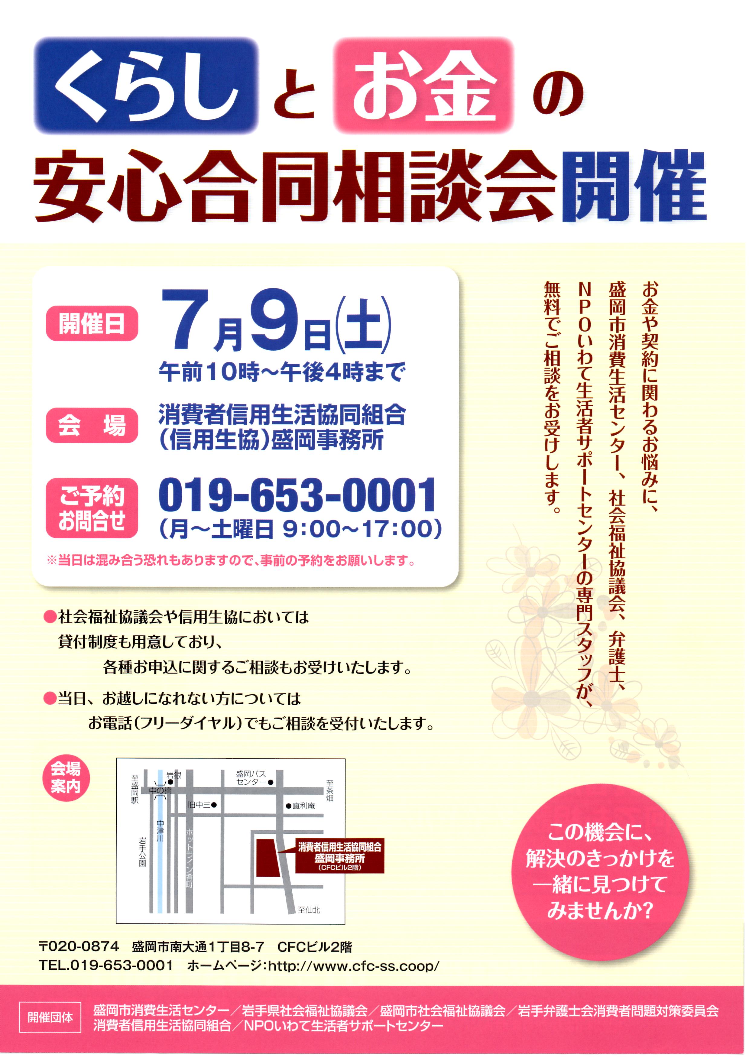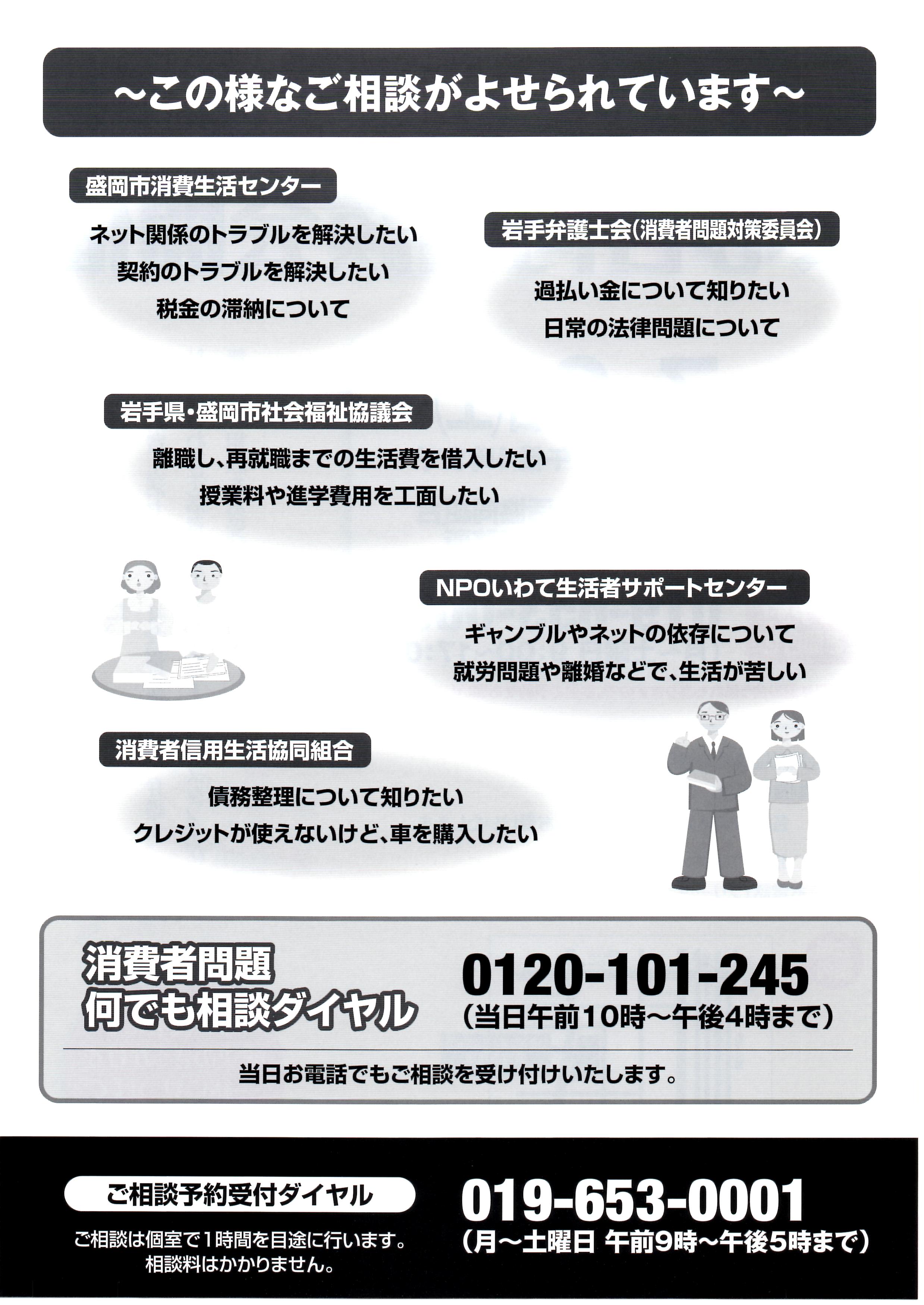 ・岩手弁護士会消費者問題対策委員会 ・消費者信用生活協同組合 ・NPOいわて生活者サポートセンター