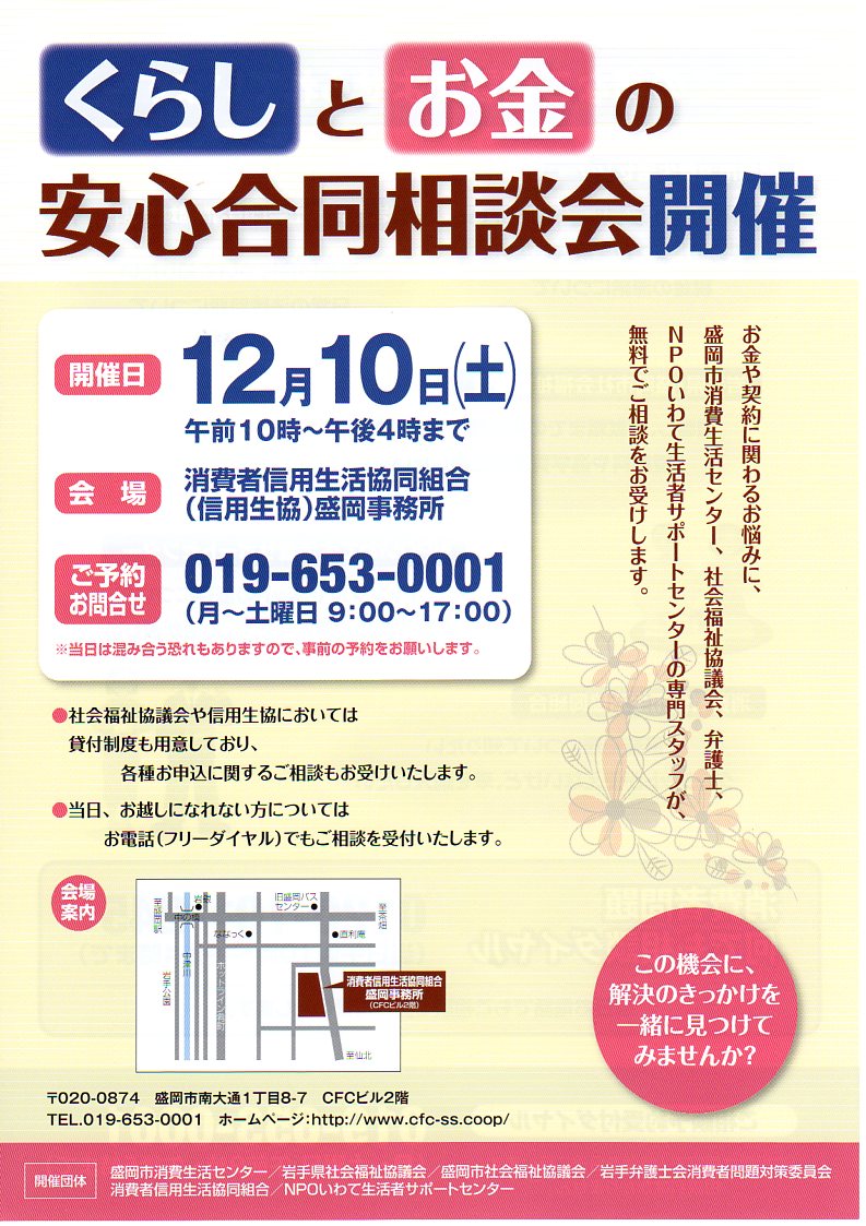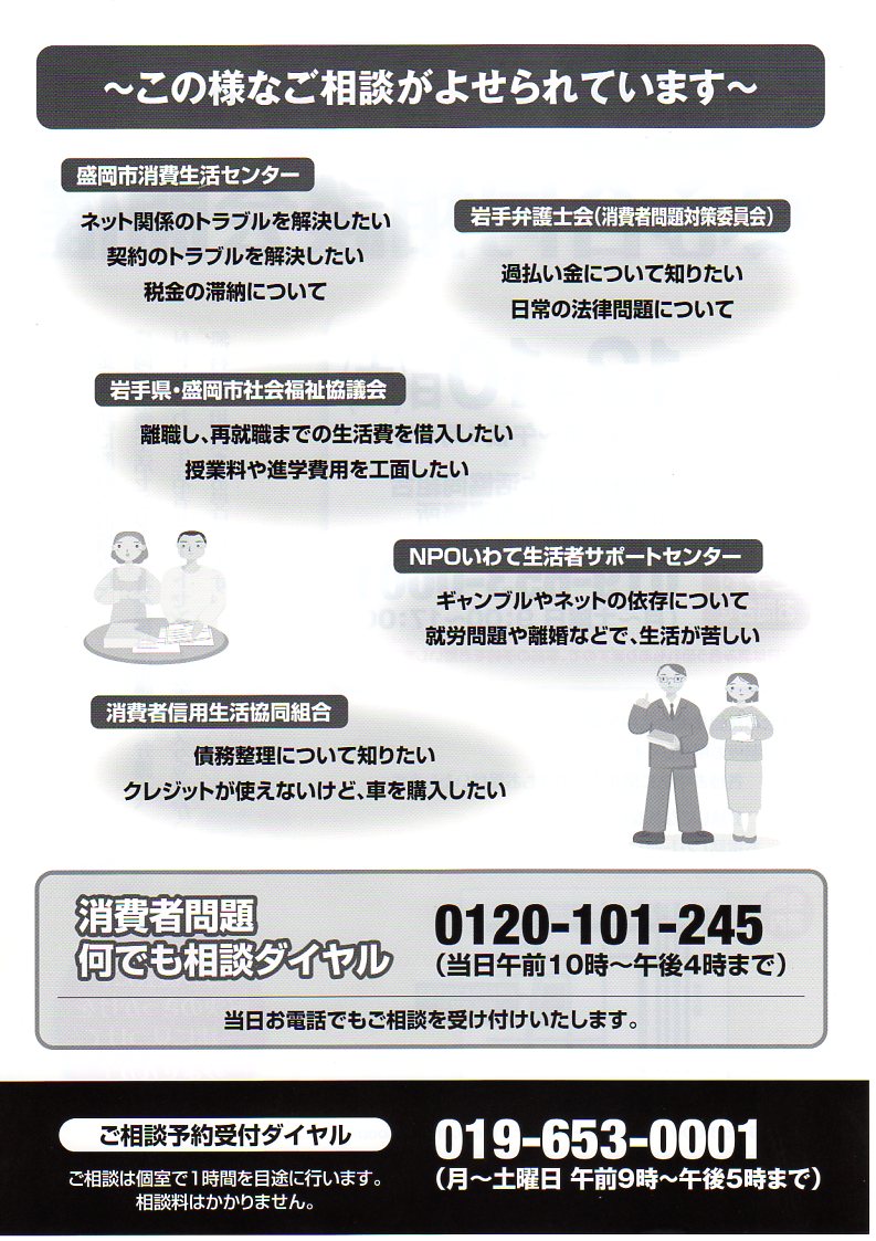 ・岩手弁護士会消費者問題対策委員会 ・消費者信用生活協同組合 ・NPOいわて生活者サポートセンター
