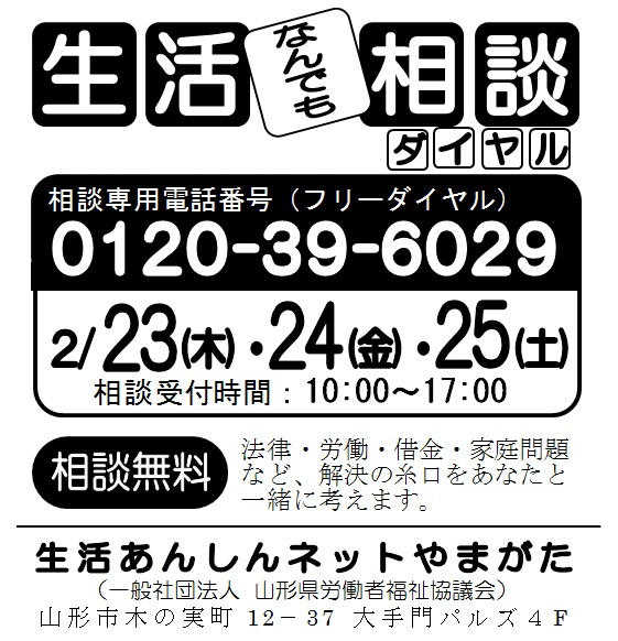 集中相談会「生活なんでも相談ダイヤル」を下記のとおり実施します。