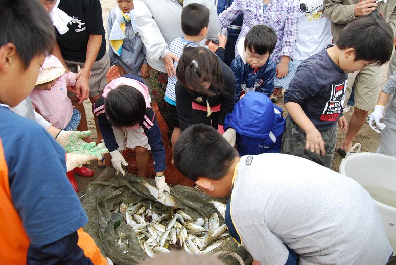 捕れた魚に喜ぶ子どもたち