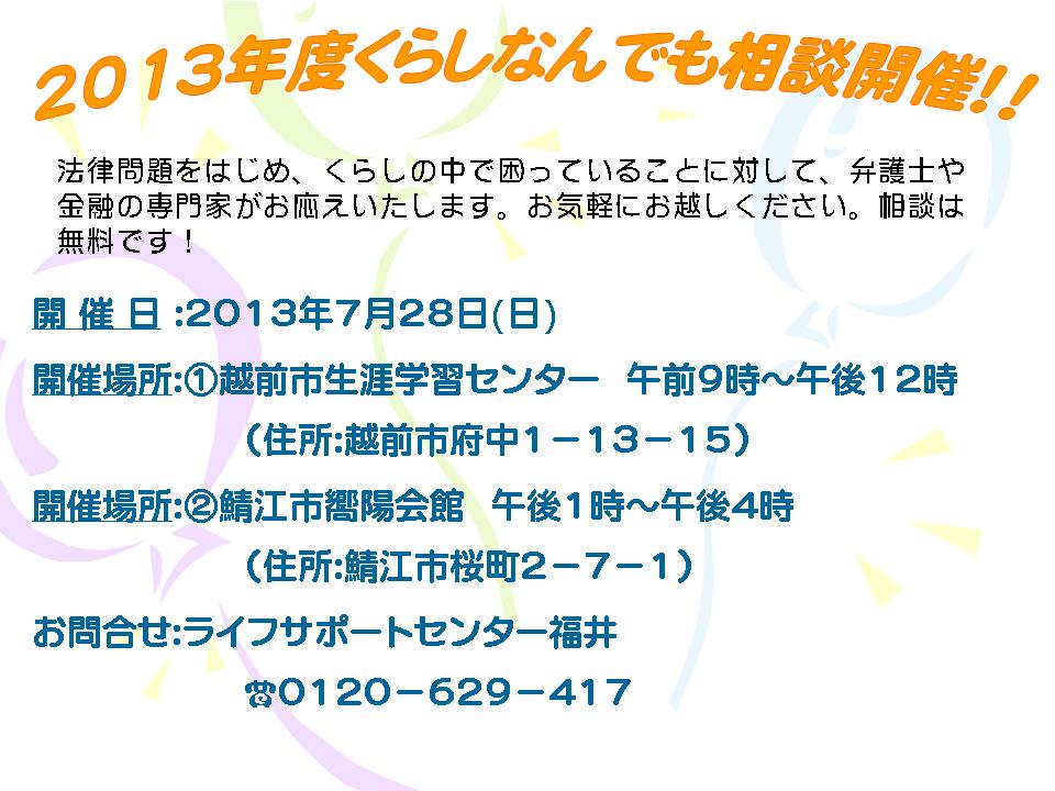 2013年度第1回くらしなんでも相談 |