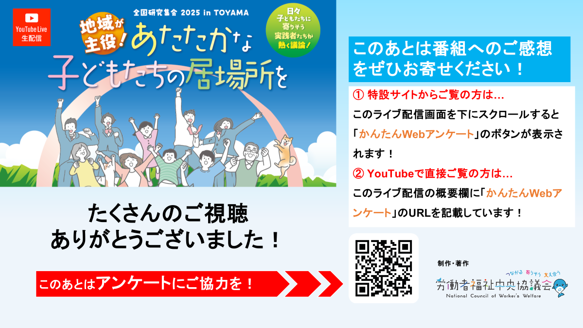 2025年6月7日より公開しておりました「見逃し配信版」は7月9日をもって公開を終了致しました。再生回数は1,022回でした。たくさんのご視聴をありがとうございました。