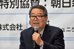 イベントは「めざす会」・高木剛代表のあいさつで始まった。メインステージ第1部では「めざす会」・樋口恵子代表、淑徳大学・結城康博教授がスピーカーとなり、NHK・堀家解説委員のコーディネートのもと、「その介護離職、おまちなさい」と題したトークセッションを行った。