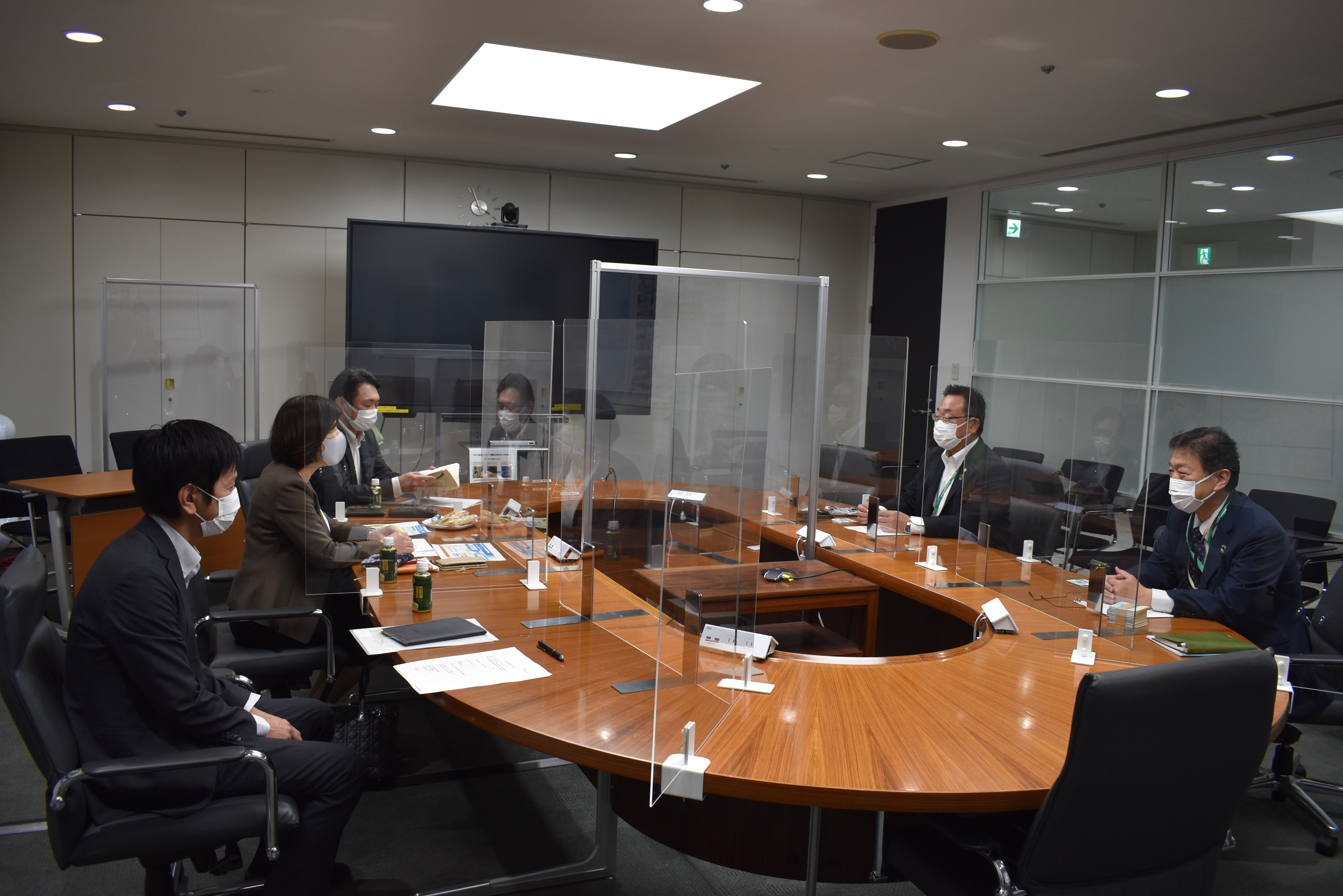 11月14日、こくみん共済coopの髙橋専務理事、石田常務執行役員を訪問し、中央労福協の南部事務局長と意見交換を行った。