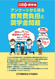 昨年8月下旬~11月末に実施した「奨学金や教育費負担に関するアンケート調査」の結果をまとめたミニパンフを発行しました。皆様にご協力いただき16,588件(調査票13,938件、WEB 2,650件)の回答を得ることが出来ました。ありがとうございました。