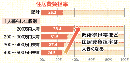 また、健康で文化的な住生活に必要不可欠な最低居住面積を下回る水準で生活している人が少なくないことも分かりました。