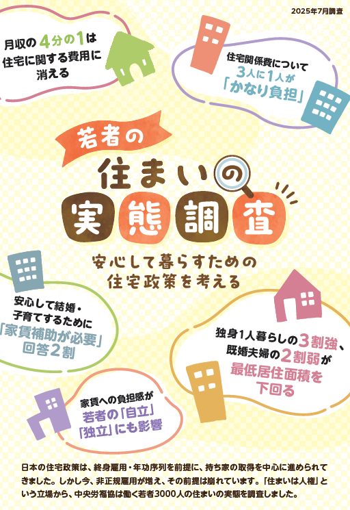 中央労福協は2026年2月13日、30代以下の働く若者3,000人を対象に実施した「若年層における住宅に関する意識・実態に関する調査」の結果を公表しました。